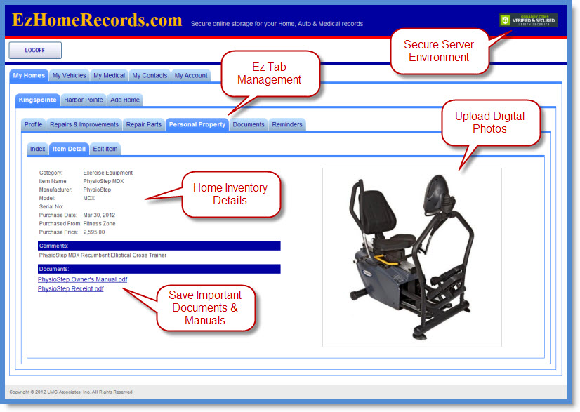 Secure online record storage for your Home, Auto & Medical Records!